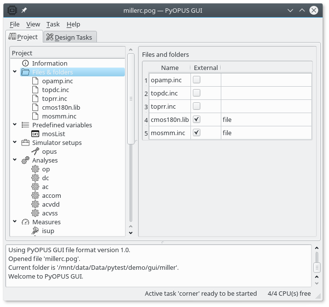 The project tab is always open and cannot be closed. The left part of the tab is a tree where all the settings are organized in groups. The right part displays the group of settings selected in the tree on the left. If the tab title is marked with an asterisk, the project was changed and have not been saved yet.