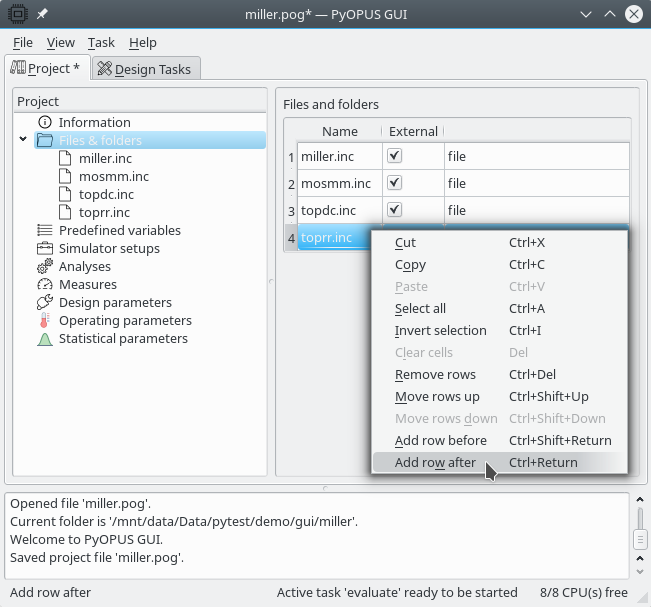 As soon as you add a file the GUI will check if it exists and display this information in the table. You can also add complete folders. This comes handy if your device models come in multiple files. You simply pot them in a subfolder and add it to the project.